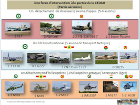Ci-joint une étude très théorique qui met en valeur les moyens aériens dont disposent désormais les pays africains. Il ya désormais en Afrique des états qui disposent de moyens récents et capables de conduire des actions militaires. Limitée au potentiel aérien , elle démontre que la région progresse dans ce domaine avec la remise en état de nombreux aéronefs au Nigeria et l’acquisition d’appareils adaptés pour les plus petits états. Le seul problème reste le financement d’une campagne militaire qui ne peut se faire sur les budgets courants.